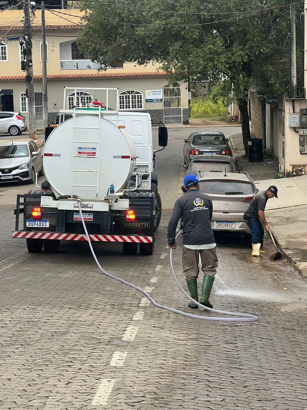 O trabalho de limpeza de ruas e avenidas do centro de Conceição do Castelo está sendo reforçado pela equipe da Secretaria de Obras e Serviços Urbanos. Os servidores municipais responsáveis por esse trabalho, além dos serviços de rotina, estão lavando diversas localidades com o caminhão pipa. A ação visa reduzir a poeira e o acúmulo de terra e resíduos nos acostamentos das ruas.