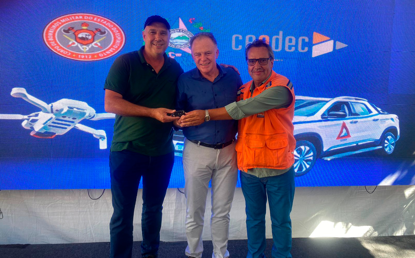 O Governo do Estado realizou a entrega desses equipamentos para as prefeituras de 50 municípios capixabas, com o objetivo de fortalecer a capacidade de atendimento das Defesas Civis Municipais nos locais atingidos por fortes chuvas. Durante a solenidade, o governador Renato Casagrande assinou a autorização para aquisição de mais 24 picapes e 24 drones que serão entregues aos demais municípios capixabas.