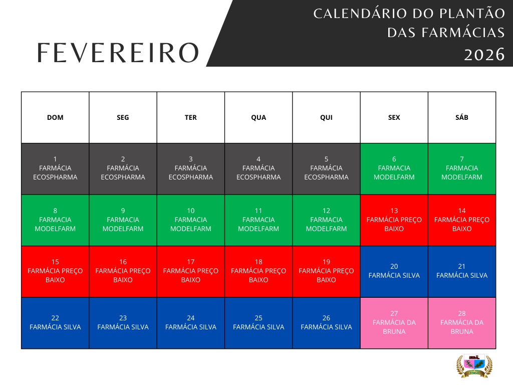 PLANTÃO DE FARMÁCIAS FEVEREIRO - 2026