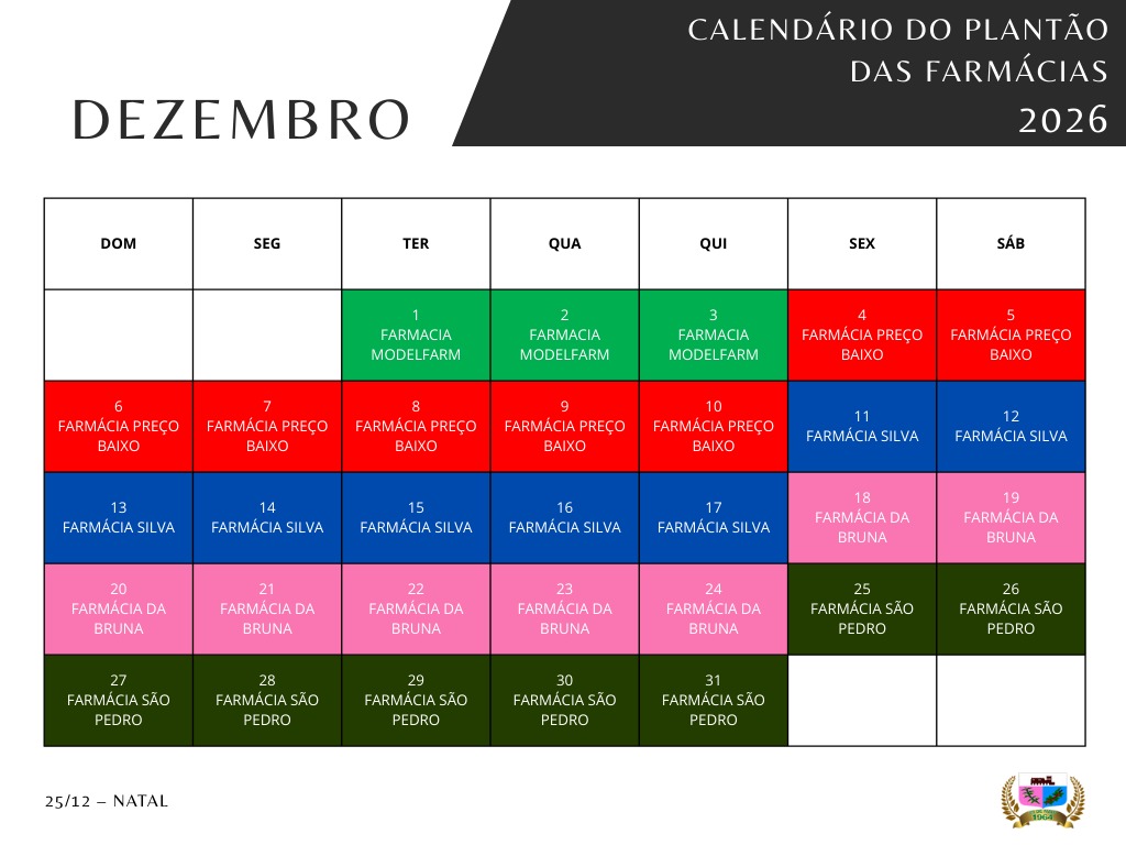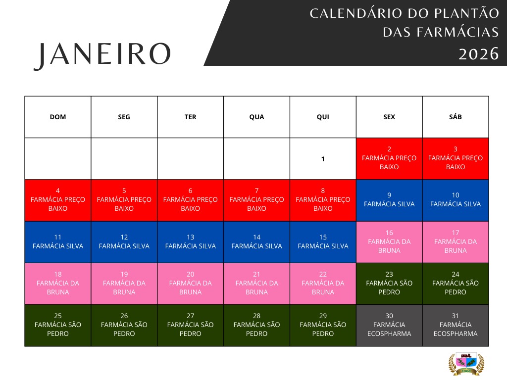 PLANTÃO DE FARMÁCIAS JANEIRO - 2026