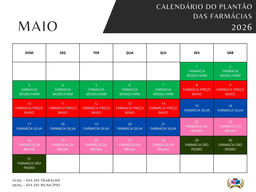 PLANTÃO DE FARMÁCIAS MAIO - 2026