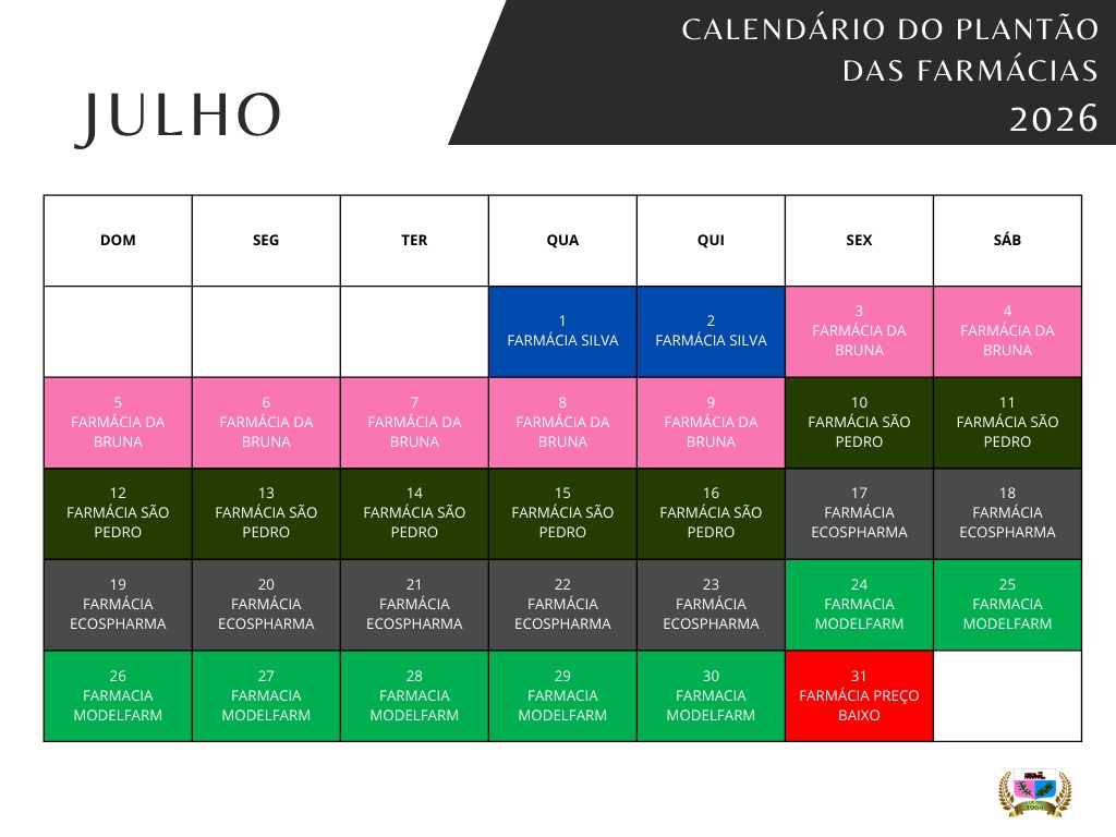 PLANTÃO DE FARMÁCIAS JULHO - 2026