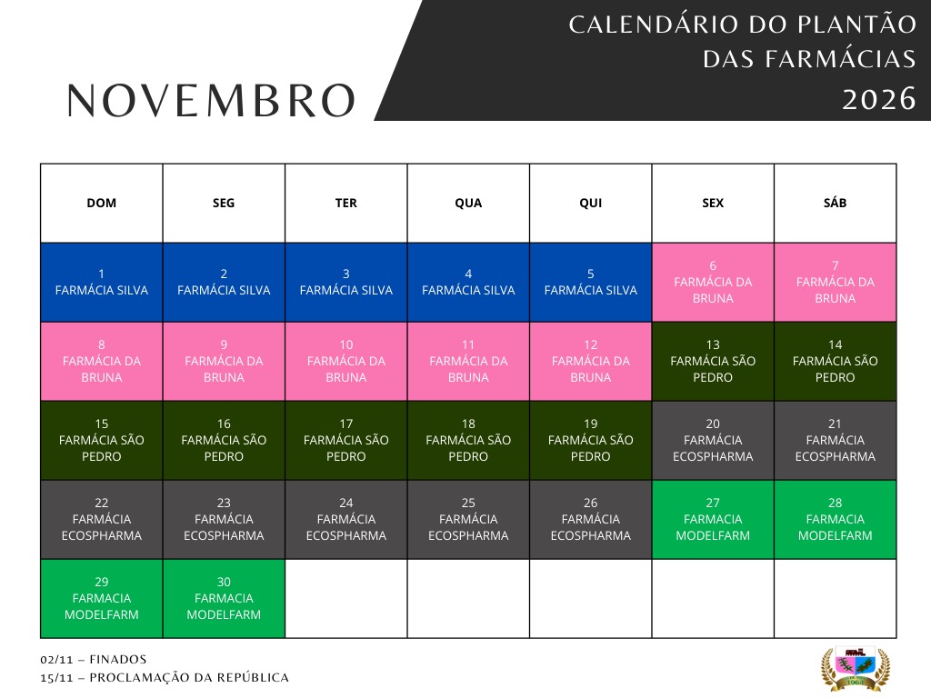 PLANTÃO DE FARMÁCIAS OUTUBRO - 2026